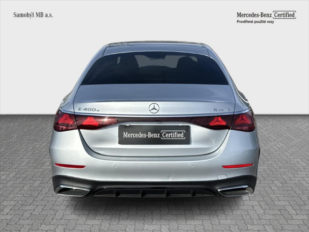 Mercedes-Benz Třída E 400e 4MATIC AMG linie: kombinovaná spotřeba paliva: 0.7 l/100km; kombinované emise CO2: 15 g/km (WLTP).