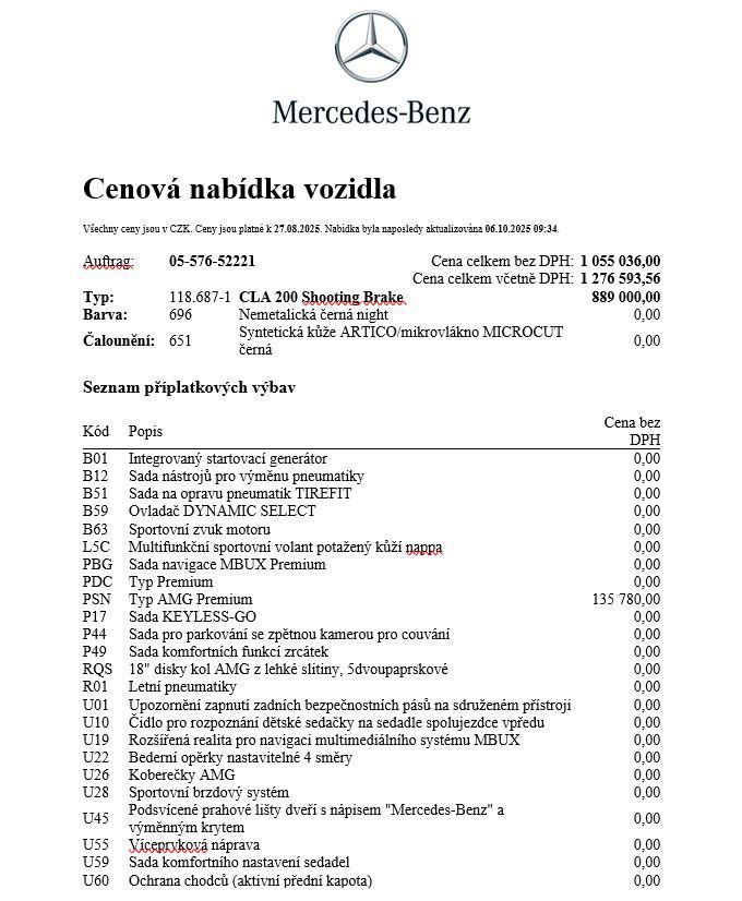 Mercedes-Benz CLA 200 Shooting Brake: kombinovaná spotřeba paliva: 0 l/100km; kombinované emise CO2: 0 g/km (WLTP).