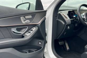 Tento konkrétní vůz je vybaven příplatkovou prémiovou barvou MANUFAKTUR bílá diamantová, výrazným paketem AMG Line a bohatou nadstandardní výbavou, která zahrnuje například adaptivní tempomat DISTRONIC PLUS či Sadu Premium Plus. Díky tomu nabízí ještě vyšší komfort, bezpečnost a exkluzivitu. EQC se pyšní mimořádně tichým a kultivovaným elektrickým pohonem, luxusním a skvěle odhlučněným interiérem a díky systému 4MATIC také sebejistým chováním v jakýchkoli podmínkách.