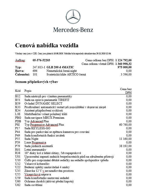 Poskytovatelem financování je Mercedes‑Benz Financial Services Česká republika s. r. o.