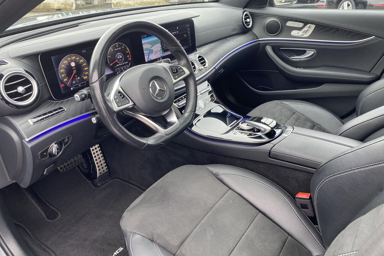 Pravidelný autorizovaný servis, nadstandartní výbava: 4MATIC – pohon všech kol, automatická 9stupňová převodovka, AMG paket exteriér, AMG paket interiér, panoramatická skleněná střecha, LED světlomety, head-up displej, digitální přístrojový štít, COMAND APS navigace, Apple CarPlay, Android Auto, kamera 360°, parkovací asistent včetně dálkového parkování, asistent mrtvého úhlu, aktivní brzdný asistent, rozpoznávání dopravních značek, adaptivní dálková světla, KEYLESS-GO, elektrické víko zavazadlového prostoru, keyless-go, paměť sedadla řidiče, vyhřívaná přední sedadla, ambientní osvětlení interiéru, černý strop, sportovní volant AMG, 19" AMG kola, NIGHT paket, zatmavená skla, elektricky sklopná zrcátka, dvouzónová klimatizace, tempomat, palivová nádrž s velkým objemem, Euro 6, metalický lak Selenite Grey
