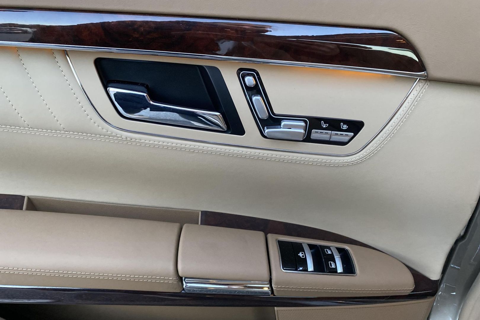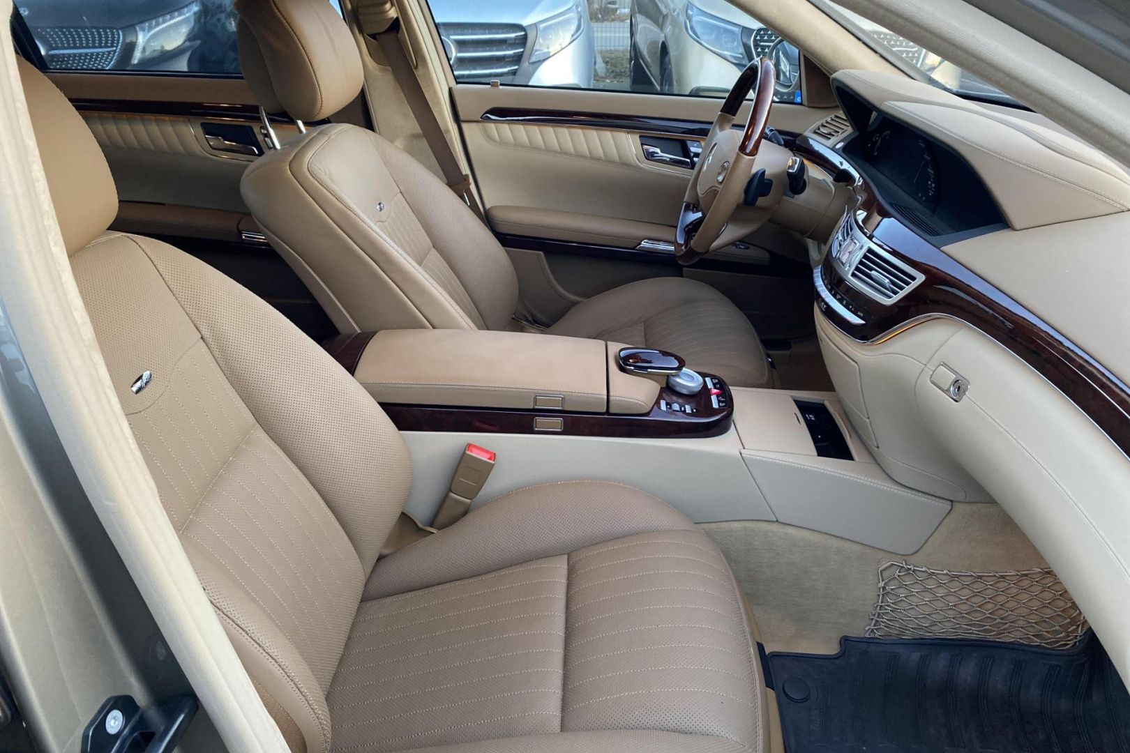 Tempomat s regulací odstupu Plus (DISTRONIC PLUS), asistent mrtvého úhlu, Paměťová sada (sedadlo řidiče, sloupek řízení a zrcátka), Automatická 5stupňová převodovka, Vyhřívaný volant, Kůže Exclusiv - hnědá, Bi-xenonové světlomety s aktivním světlem do zatáčky, Metalický barevný odstín MANUFAKTUR béžová sanidine, Soundsystém Premium,