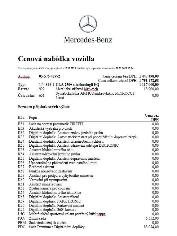 Mercedes-Benz CLA 250+ EQ AKCE: kombinovaná spotřeba energie: Wh/km; kombinované emise CO2: g/km (WLTP).