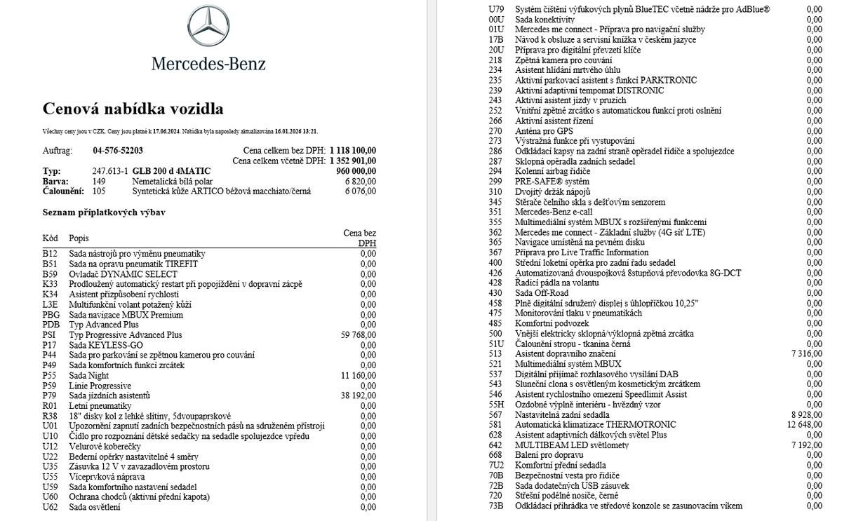 Mercedes-Benz GLB 200d 4M, CZ: kombinovaná spotřeba paliva: 0 l/100km; kombinované emise CO2: 0 g/km (WLTP).
