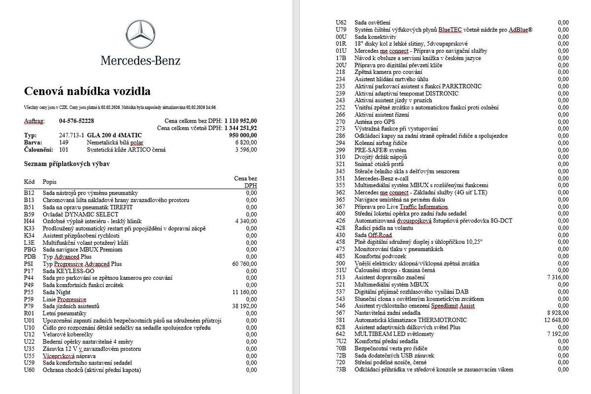 Mercedes-Benz GLA 200d 4M, CZ, 1.majitel: kombinovaná spotřeba paliva: 0 l/100km; kombinované emise CO2: 0 g/km (WLTP).