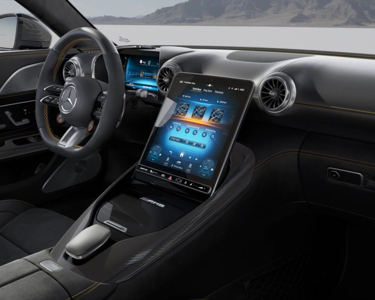 - Špičková brzdová soustava AMG s kompozitními, karbon-keramickými brzdovými kotouči