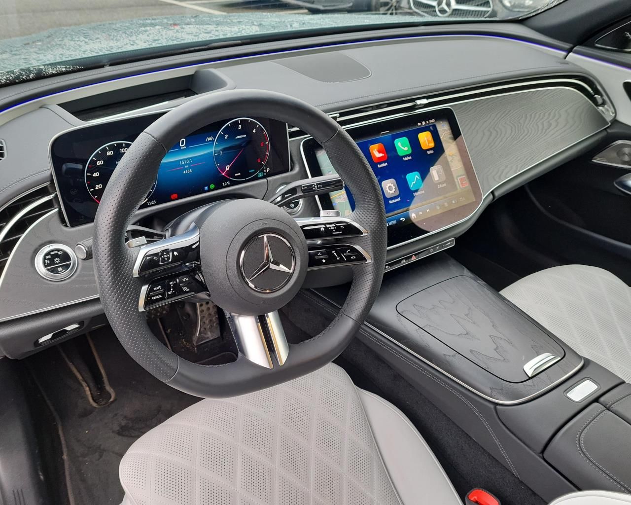 - Prahové lišty, vpředu podsvícené s nápisem "Mercedes-Benz"