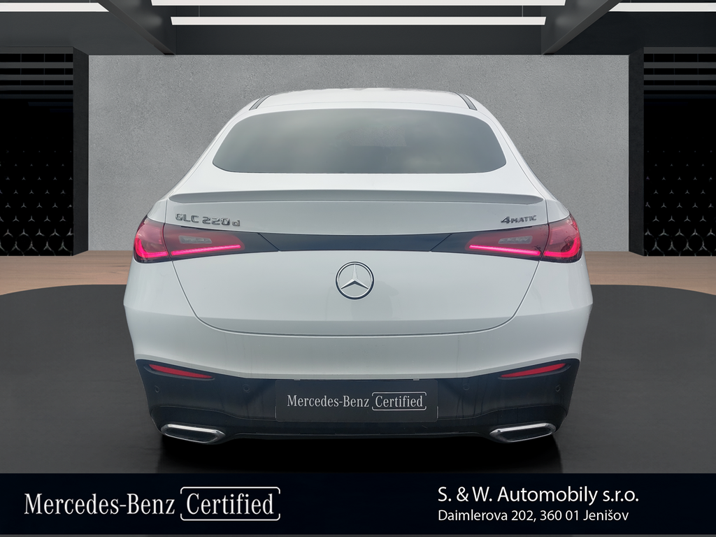 Mercedes-Benz GLC 220d 4Matic Kupé: kombinovaná spotřeba paliva: 5.4 l/100km; kombinované emise CO2: g/km (WLTP).