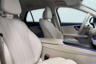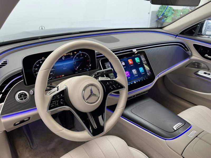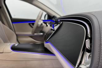 - Prahové lišty, vpředu podsvícené s nápisem "Mercedes-Benz"