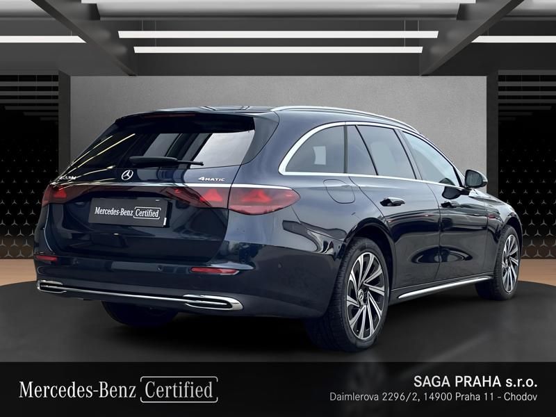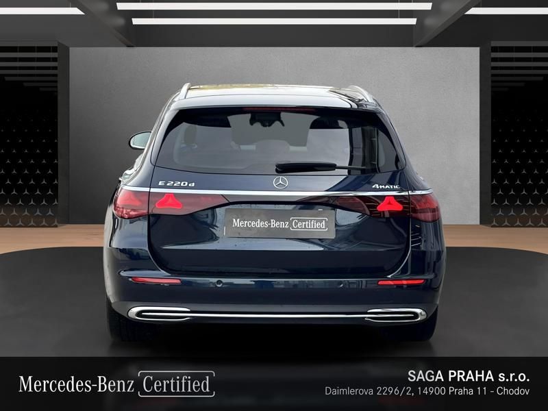 Mercedes-Benz Třída E 220d 4MATIC: kombinovaná spotřeba paliva: 5.4 l/100km; kombinovaná spotřeba energie: 5.4 Wh/km; kombinované emise CO2: 141 g/km (WLTP).
