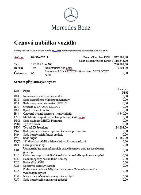 Mercedes-Benz Třída A 200: kombinovaná spotřeba paliva: 0 l/100km; kombinované emise CO2: 0 g/km (WLTP).